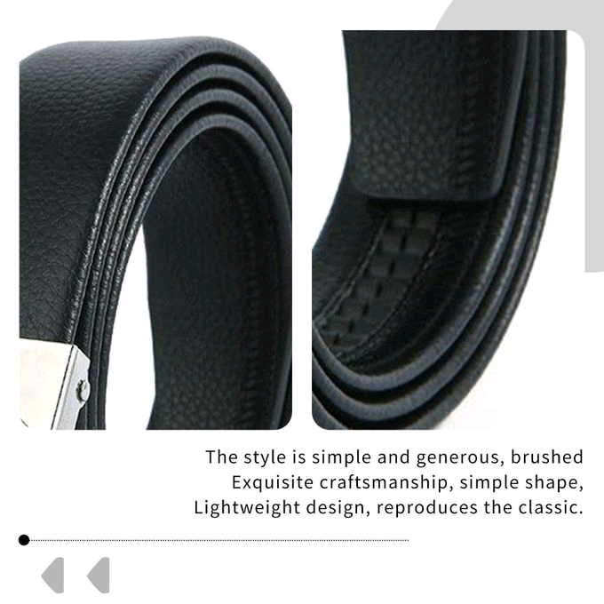 This men’s automatic belt combines a silver round buckle decorated with crystal wheel-inspired design elements, blending mechanical style with luxury. The high-quality black leather strap is flexible, resistant to scratches, and smooth against the waist. A quick slide mechanism helps you adjust comfortably with no holes needed. Its bright anti-fade plating keeps the shine, making it a smart match for formalwear, celebrations, or confident daily style.
