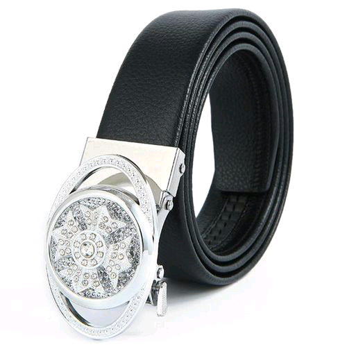 This men’s automatic belt combines a silver round buckle decorated with crystal wheel-inspired design elements, blending mechanical style with luxury. The high-quality black leather strap is flexible, resistant to scratches, and smooth against the waist. A quick slide mechanism helps you adjust comfortably with no holes needed. Its bright anti-fade plating keeps the shine, making it a smart match for formalwear, celebrations, or confident daily style.